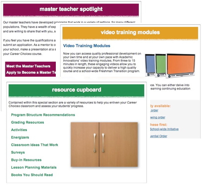 | Academic Innovations' online professional development site for the Career Choices curriculum utilizes technology to give you the flexibility to take advantage of a variety of professional development resources and opportunities. |